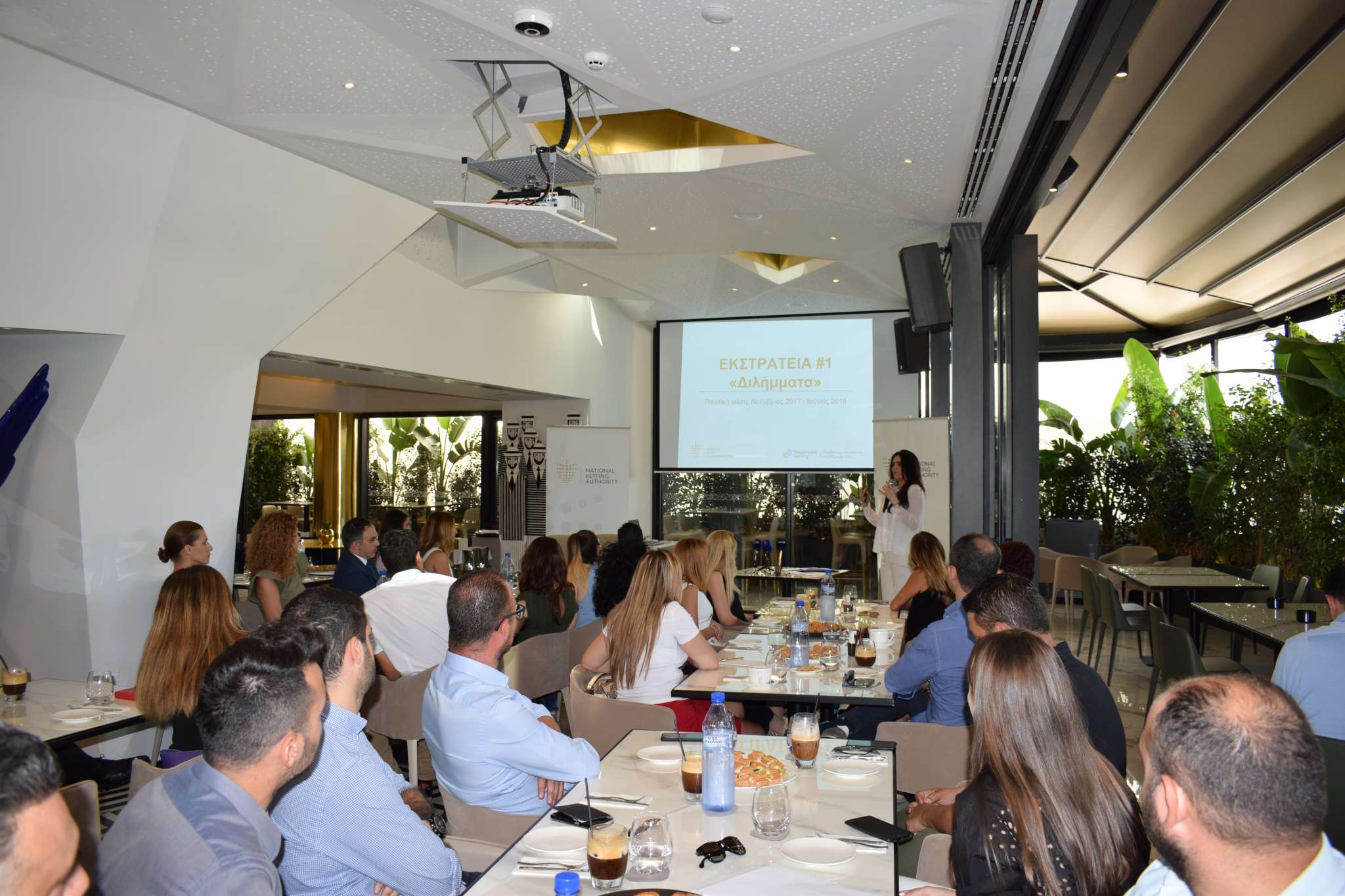 Η Εθνική Αρχή Στοιχημάτων παράθεσε σήμερα δημοσιογραφική διάσκεψη κατά την οποία έκανε αποτίμηση της εκστρατείας Υπεύθυνου Παιχνιδιού «Διλήμματα» Δεκέμβριος 2017 – Ιούνιος 2018 και παρουσίασε την εκστρατεία Υπεύθυνου Παιχνιδιού «Σκέψεις» Ιούλιος 2018 – Ιούνιο 2019.