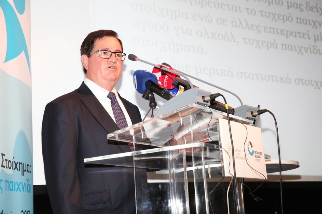 Στο πλαίσιο της ημερίδας, ο Δρ. Ανδρέα Καπαρδής, καθηγητή του Τμήματος Νομικής του Πανεπιστημίου Κύπρου, ανάπτυξε το θέμα «Στοίχημα και Τυχερό Παιχνίδι: Νομικές, ψυχολογικές και εγκληματολογικές πτυχές».